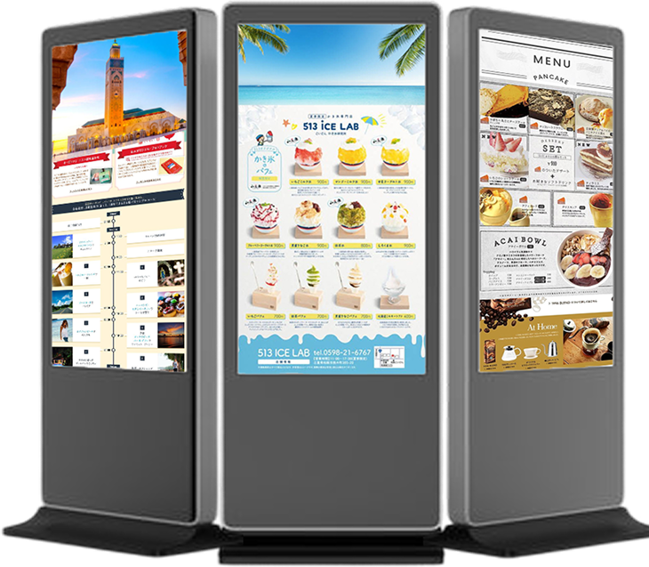 - 大型ビジョン・LED広告・アドトラックから、店内モニターや卓上タブレットまで、多拠点・多端末を